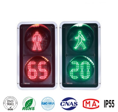 人行信号灯出光面直径有300mm和400mm,光源采用进口超高亮度LED,具有寿命长、功耗低、外观新颖等特点。