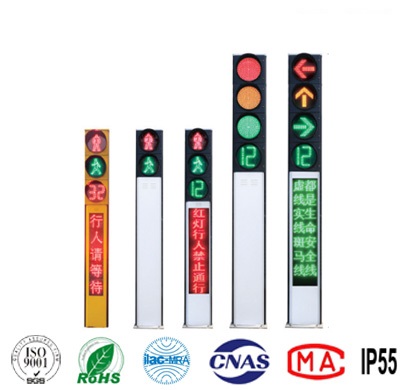 可嵌入式安装行人过街语音提示器和户外表贴LED显示屏。侧面可外挂人行灯,实现双灯或三灯共杆。